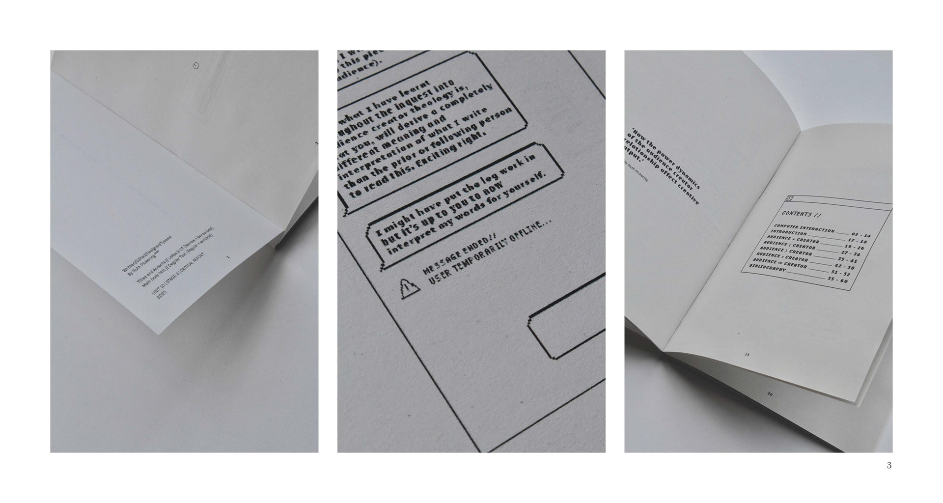 A written piece concerning creative output in relation to the audience-creator relationship.